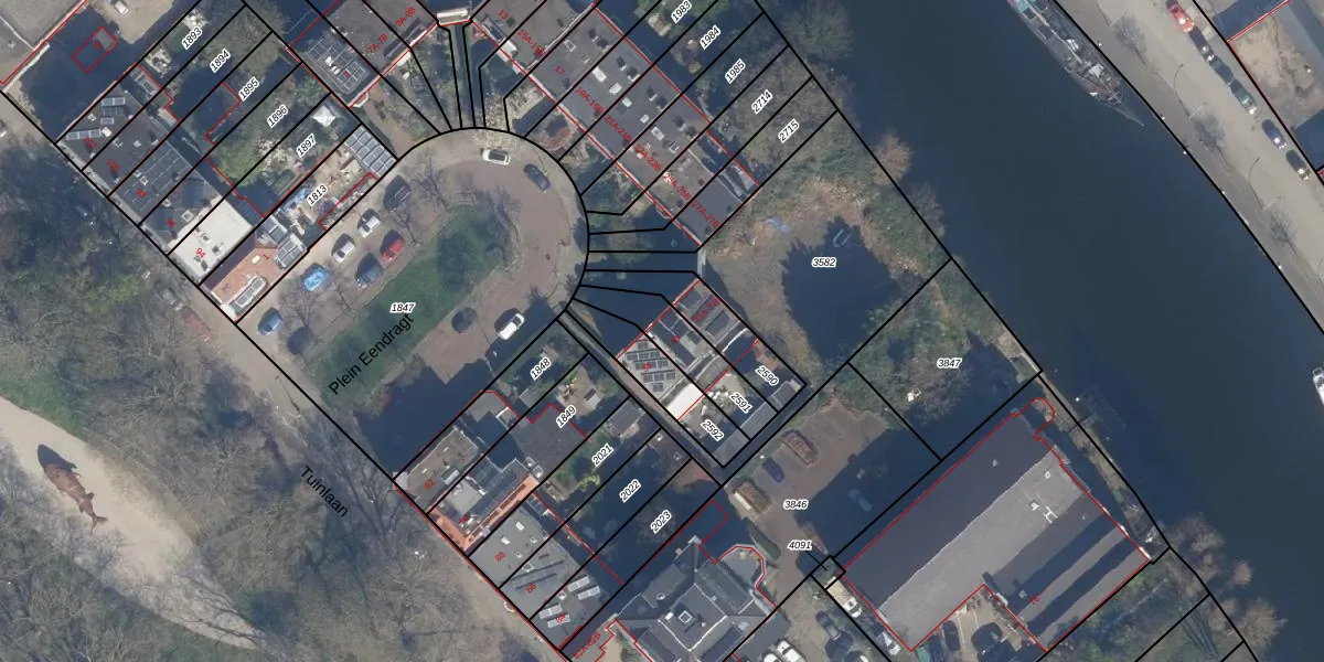 Het perceel waarop Plein Eendragt 33 staat heeft een oppervlakte van 185 m². Dit is een middelgroot perceel. De perceeloppervlakte wordt geregistreerd door het Kadaster. Gedetailleerde informatie over de maten van dit perceel kunt u vinden in het rapport Kadastrale kaart met maatvoering van Plein Eendragt 33.