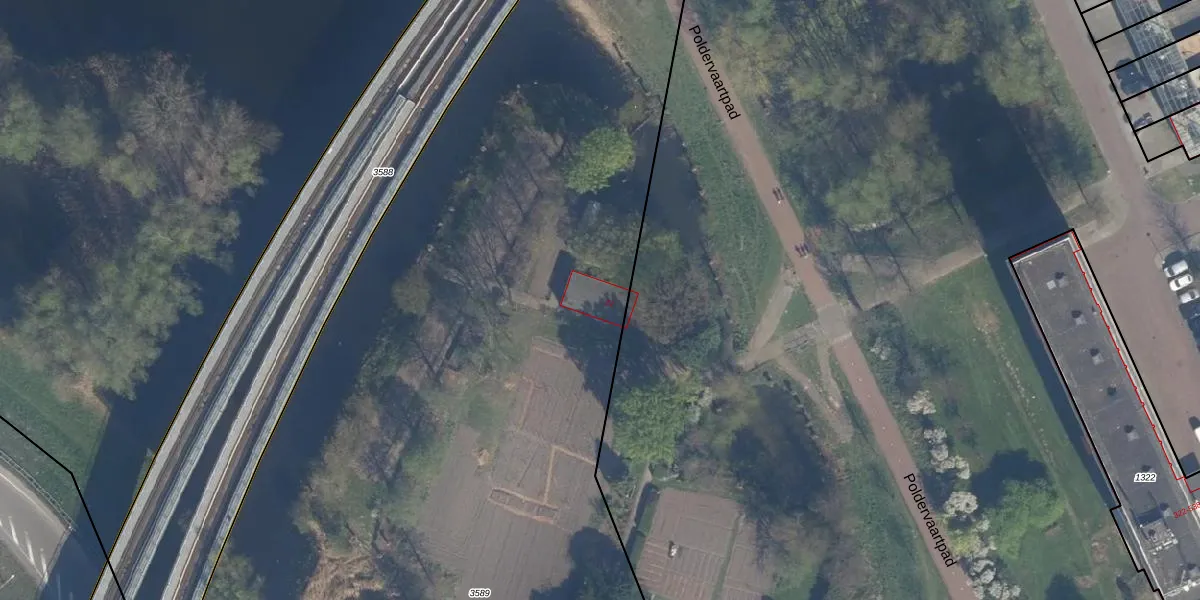 Poldervaartpad 21 is gelegen op kadastraal perceel SDM01H3589. Deze kadastrale aanduiding is uniek en wordt gebruikt door het Kadaster om eigendomsrechten en andere zakelijke rechten vast te leggen. Het perceel maakt onderdeel uit van de kadastrale gemeente Schiedam.