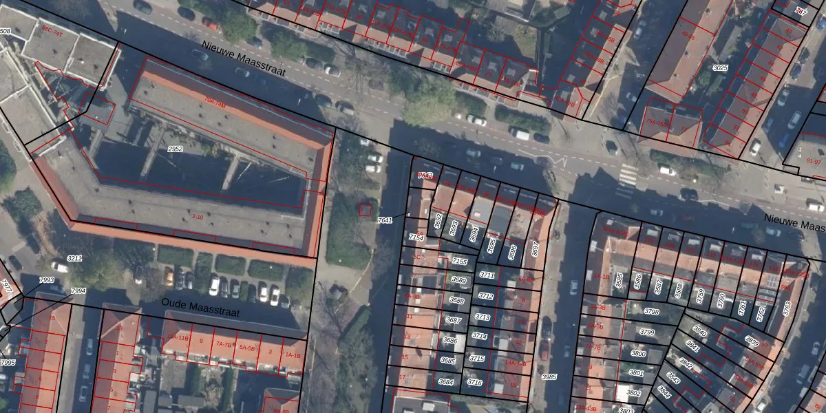 Gebruik de zoekbalk of klik op een perceel voor informatie over de adressen binnen dit perceel.