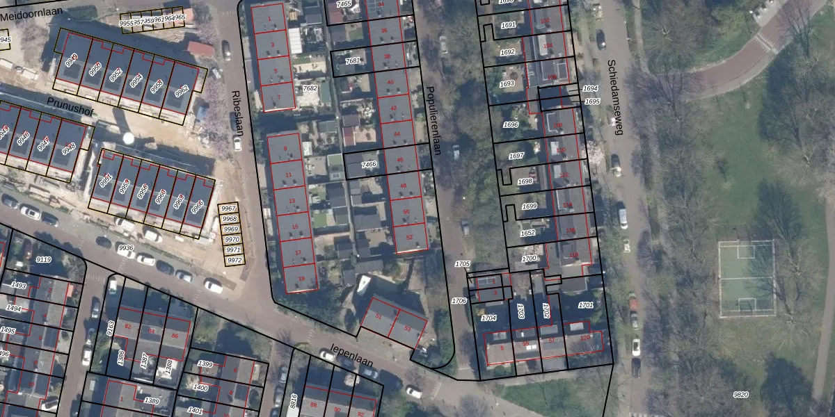 Populierenlaan 50 is gelegen op kadastraal perceel SDM01Q7682. Deze kadastrale aanduiding is uniek en wordt gebruikt door het Kadaster om eigendomsrechten en andere zakelijke rechten vast te leggen. Het perceel maakt onderdeel uit van de kadastrale gemeente Schiedam.