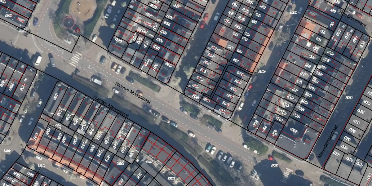 Het adres is gelegen op perceel 1163 in de sectie M en de kadastrale gemeente Schiedam. De kadastrale aanduiding is aldus SDM01-M-1163. Het perceel is kleiner dan gemiddeld in Schiedam. Het perceel is 45 m² groot, terwijl het gemiddelde ligt op 1011,07 m². Het kleinste perceel in de kadastrale gemeente is 0 m² groot. De grootste perceeloppervlakte is 53,5 ha. Op het perceel zijn 2 adressen aanwezig. De laatste wijziging in het de Basisregistratie Kadaster (BRK) was op 01-10-1998.