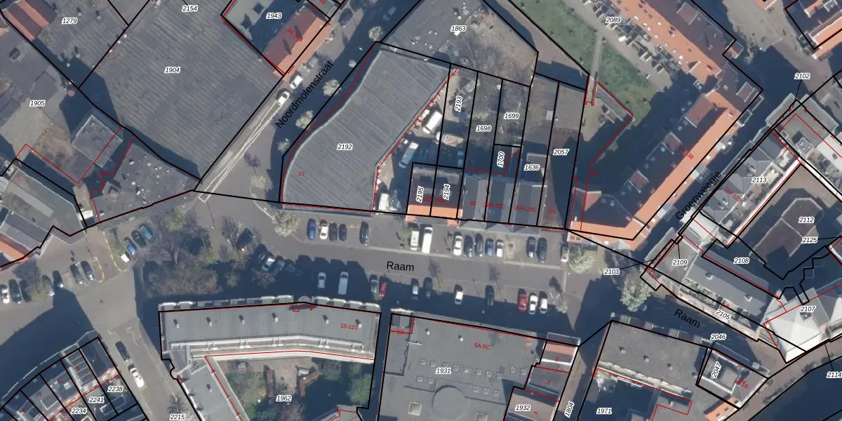 Het perceel waarop Raam 34-A staat heeft een oppervlakte van 72 m². Dit is een klein perceel. De perceeloppervlakte wordt geregistreerd door het Kadaster. Gedetailleerde informatie over de maten van dit perceel kunt u vinden in het rapport Kadastrale kaart met maatvoering van Raam 34-A.