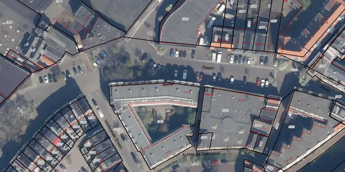 Het perceel waarop Raam 99 staat heeft een oppervlakte van 1790 m². Dit is een zeer groot perceel. De perceeloppervlakte wordt geregistreerd door het Kadaster. Gedetailleerde informatie over de maten van dit perceel kunt u vinden in het rapport Kadastrale kaart met maatvoering van Raam 99.