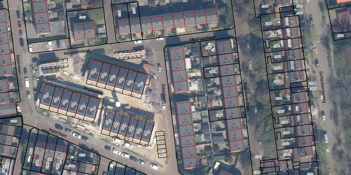 Ribeslaan 7 is gelegen op kadastraal perceel SDM01Q7682. Deze kadastrale aanduiding is uniek en wordt gebruikt door het Kadaster om eigendomsrechten en andere zakelijke rechten vast te leggen. Het perceel maakt onderdeel uit van de kadastrale gemeente Schiedam.