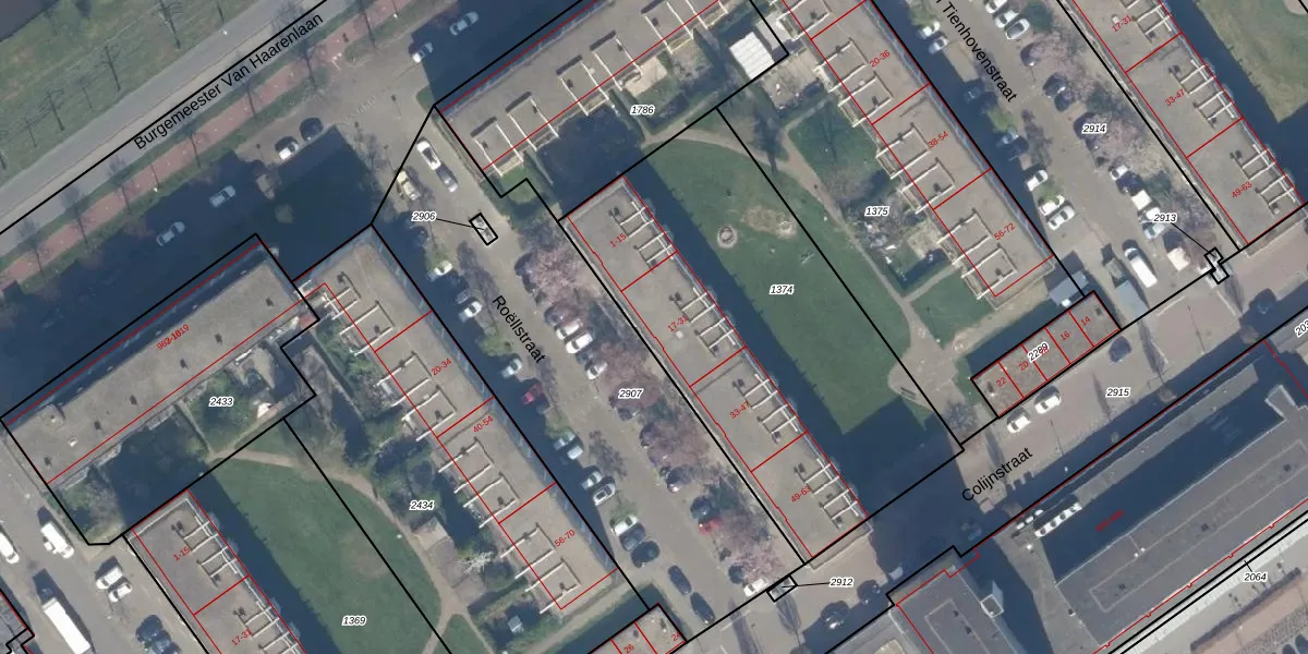 Het perceel waarop Roëllstraat 21 staat heeft een oppervlakte van 1942 m². Dit is een zeer groot perceel. De perceeloppervlakte wordt geregistreerd door het Kadaster. Gedetailleerde informatie over de maten van dit perceel kunt u vinden in het rapport Kadastrale kaart met maatvoering van Roëllstraat 21.