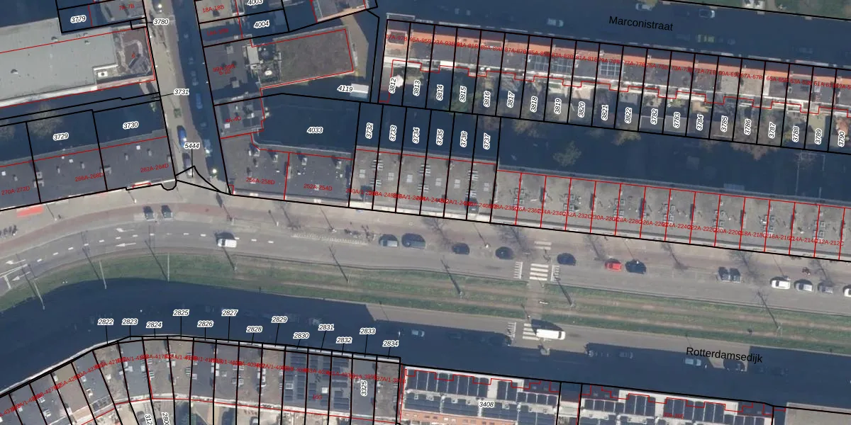 Rotterdamsedijk 244-A is gelegen op kadastraal perceel SDM01I3735. Deze kadastrale aanduiding is uniek en wordt gebruikt door het Kadaster om eigendomsrechten en andere zakelijke rechten vast te leggen. Het perceel maakt onderdeel uit van de kadastrale gemeente Schiedam.