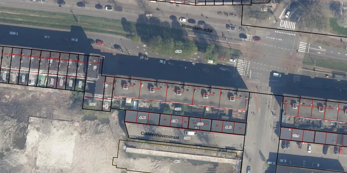 Het adres ligt op het perceel SDM01-L-3109, dat zich in de kadastrale gemeente Schiedam bevindt. De oppervlakte van het perceel is 1407 m². Dat is groter dan gemiddeld in Schiedam, waar de gemiddelde perceeloppervlakte op 1011,07 m² ligt. De grootste perceeloppervlakte in de kadastrale gemeente is 53,5 ha. De kleinste oppervlakte bedraagt 0 m². Op het perceel zijn 40 adressen aanwezig. In de Basisregistratie Kadaster (BRK) werden de grenzen van het perceel geregistreerd op 25-09-2020.