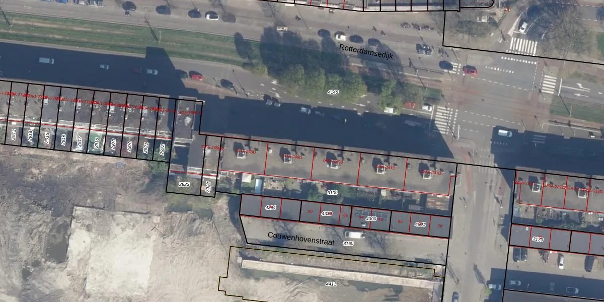 Het adres ligt op het perceel SDM01-L-3109, dat zich in de kadastrale gemeente Schiedam bevindt. De oppervlakte van het perceel is 1407 m². Dat is groter dan gemiddeld in Schiedam, waar de gemiddelde perceeloppervlakte op 1011,07 m² ligt. De grootste perceeloppervlakte in de kadastrale gemeente is 53,5 ha. De kleinste oppervlakte bedraagt 0 m². Op het perceel zijn 40 adressen aanwezig. De laatste wijziging in het de Basisregistratie Kadaster (BRK) was op 25-09-2020.