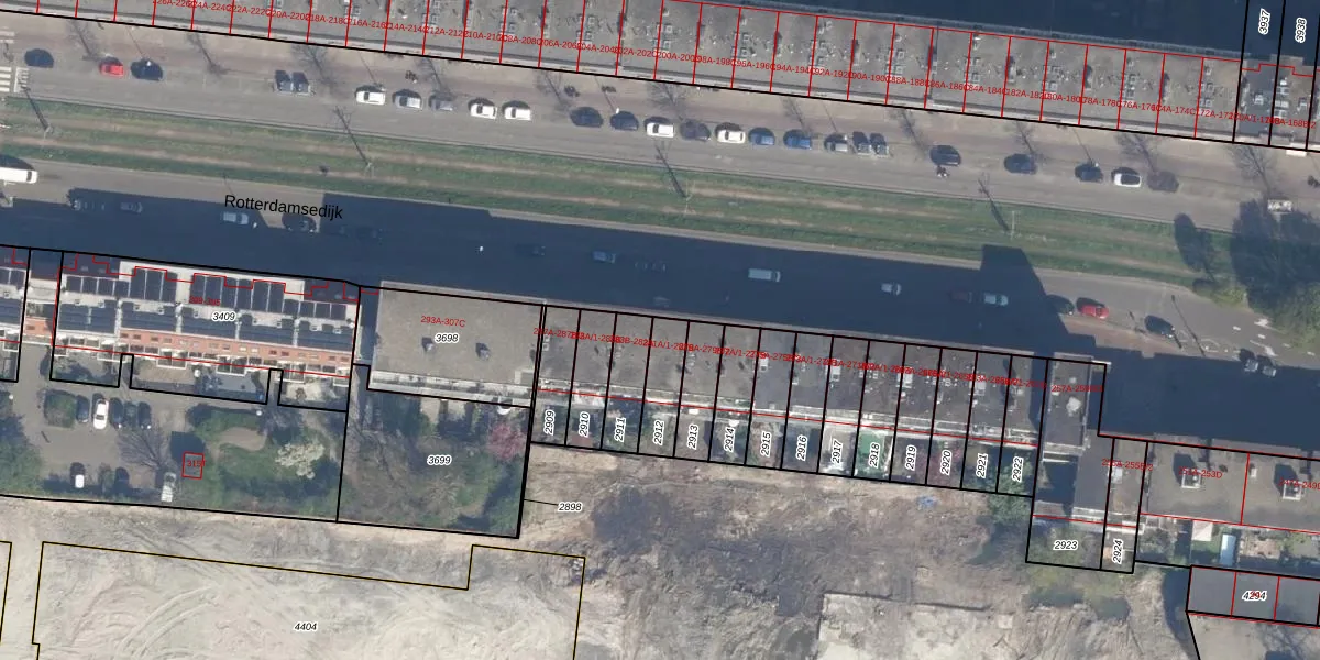 Rotterdamsedijk 281-B is gelegen op kadastraal perceel SDM01L2912. Deze kadastrale aanduiding is uniek en wordt gebruikt door het Kadaster om eigendomsrechten en andere zakelijke rechten vast te leggen. Het perceel maakt onderdeel uit van de kadastrale gemeente Schiedam.