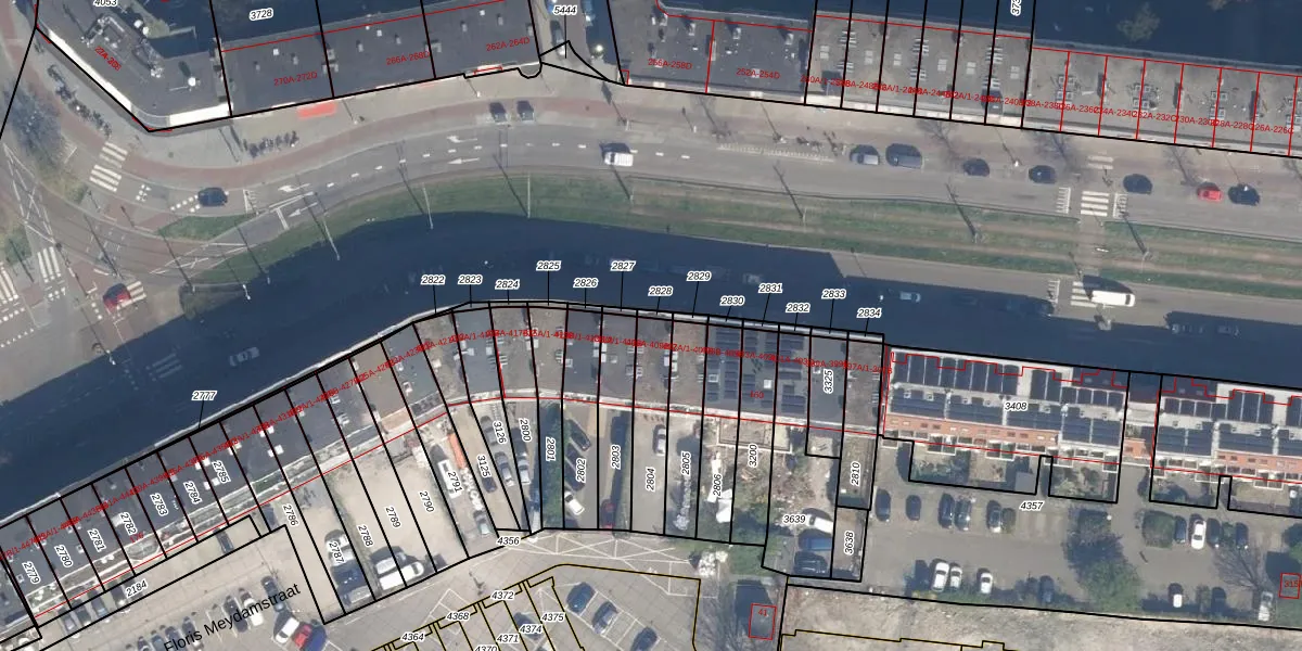 Het adres ligt op het perceel SDM01-L-2804, dat zich in de kadastrale gemeente Schiedam bevindt. Het perceel is 177 m² groot. Dat is kleiner dan de gemiddelde perceeloppervlakte in Schiedam, dat op 1011,07 m² ligt. De grootste perceeloppervlakte in de kadastrale gemeente is 53,5 ha. De kleinste oppervlakte bedraagt 0 m². Op het perceel zijn 3 adressen aanwezig. In de Basisregistratie Kadaster (BRK) werden de grenzen van het perceel geregistreerd op 01-10-1998.