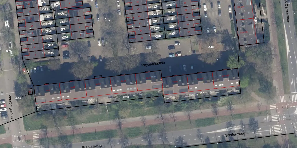 Het perceel waarop Royaardsplein 68 staat heeft een oppervlakte van 2330 m². Dit is een zeer groot perceel. De perceeloppervlakte wordt geregistreerd door het Kadaster. Gedetailleerde informatie over de maten van dit perceel kunt u vinden in het rapport Kadastrale kaart met maatvoering van Royaardsplein 68.