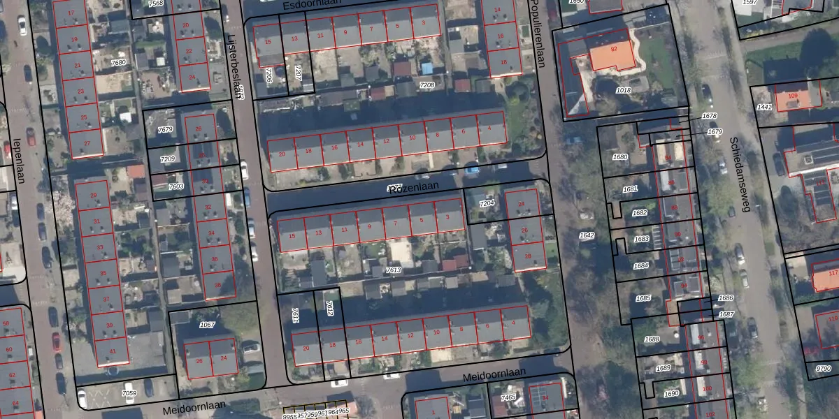 Het adres ligt op het perceel SDM01-Q-7613, dat zich in de kadastrale gemeente Schiedam bevindt. De oppervlakte van het perceel is 2320 m². Dat is groter dan gemiddeld in Schiedam, waar de gemiddelde perceeloppervlakte op 1011,07 m² ligt. De grootste perceeloppervlakte in de kadastrale gemeente is 53,5 ha. De kleinste oppervlakte bedraagt 0 m². Op het perceel liggen in totaal 16 adressen. In de Basisregistratie Kadaster (BRK) werden de grenzen van het perceel geregistreerd op 24-03-2003.