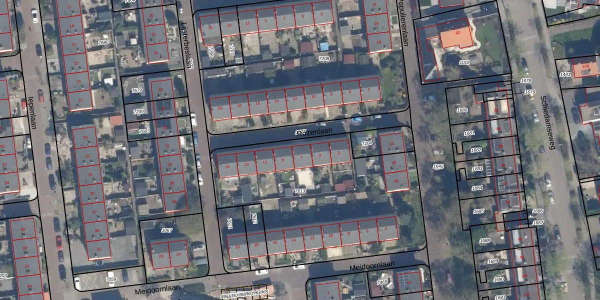Rozenlaan 7 is gelegen op kadastraal perceel SDM01Q7613. Deze kadastrale aanduiding is uniek en wordt gebruikt door het Kadaster om eigendomsrechten en andere zakelijke rechten vast te leggen. Het perceel maakt onderdeel uit van de kadastrale gemeente Schiedam.