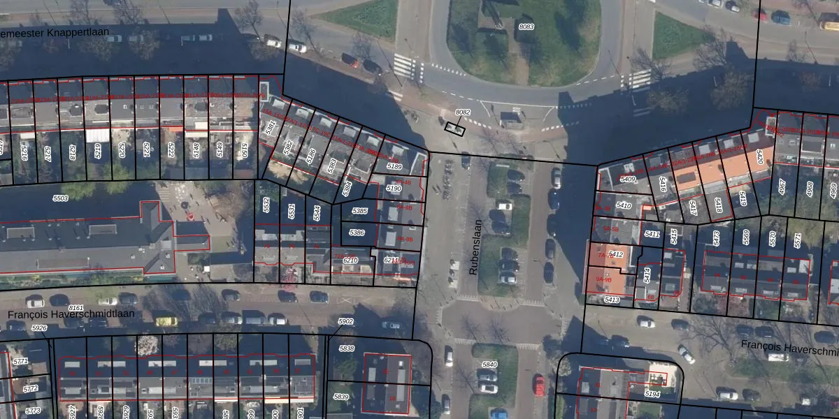 Rubenslaan 6-B is gelegen op kadastraal perceel SDM01M5385. Deze kadastrale aanduiding is uniek en wordt gebruikt door het Kadaster om eigendomsrechten en andere zakelijke rechten vast te leggen. Het perceel maakt onderdeel uit van de kadastrale gemeente Schiedam.