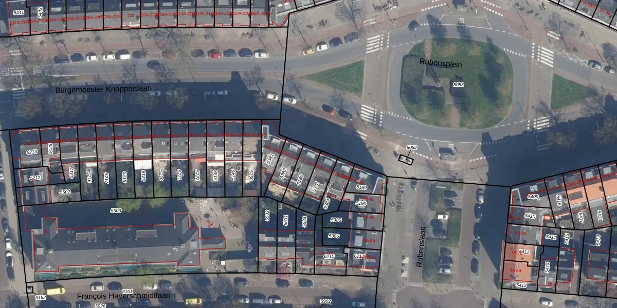 Rubensplein 19-B is gelegen op kadastraal perceel SDM01M5186. Deze kadastrale aanduiding is uniek en wordt gebruikt door het Kadaster om eigendomsrechten en andere zakelijke rechten vast te leggen. Het perceel maakt onderdeel uit van de kadastrale gemeente Schiedam.