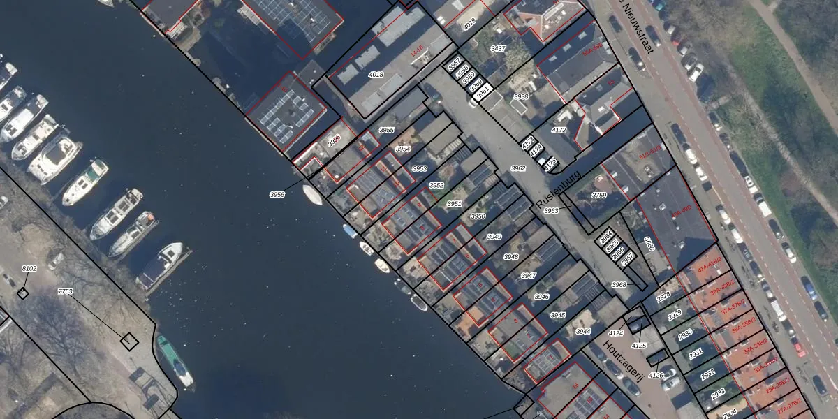 Gebruik de zoekbalk of klik op een perceel voor informatie over de adressen binnen dit perceel.