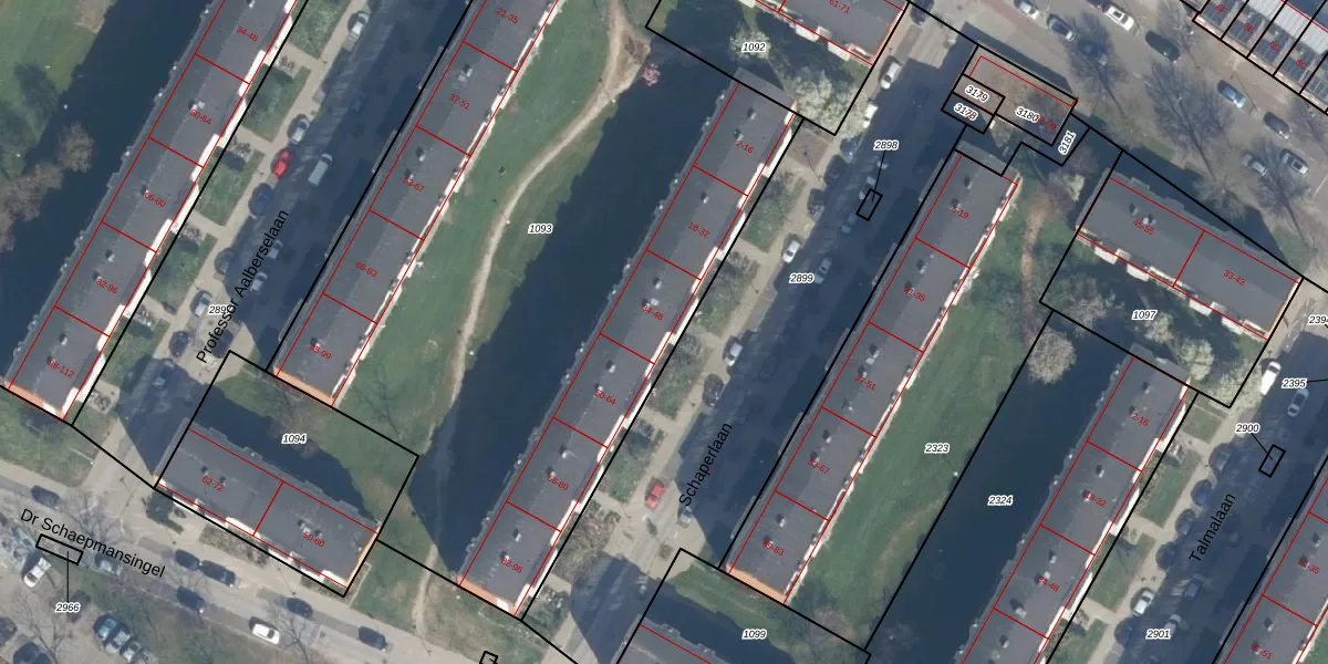 Het perceel waarop Schaperlaan 36 staat heeft een oppervlakte van 4634 m². Dit is een zeer groot perceel. De perceeloppervlakte wordt geregistreerd door het Kadaster. Gedetailleerde informatie over de maten van dit perceel kunt u vinden in het rapport Kadastrale kaart met maatvoering van Schaperlaan 36.