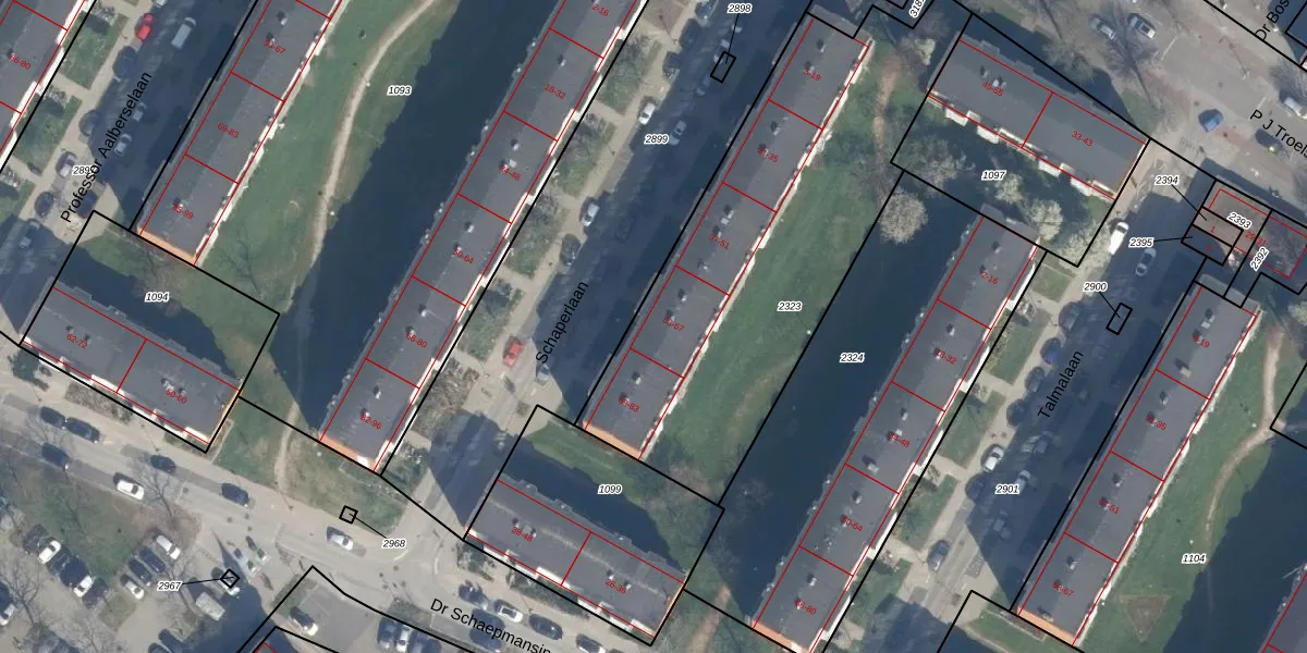 Het perceel waarop Schaperlaan 61 staat heeft een oppervlakte van 1893 m². Dit is een zeer groot perceel. De perceeloppervlakte wordt geregistreerd door het Kadaster. Gedetailleerde informatie over de maten van dit perceel kunt u vinden in het rapport Kadastrale kaart met maatvoering van Schaperlaan 61.