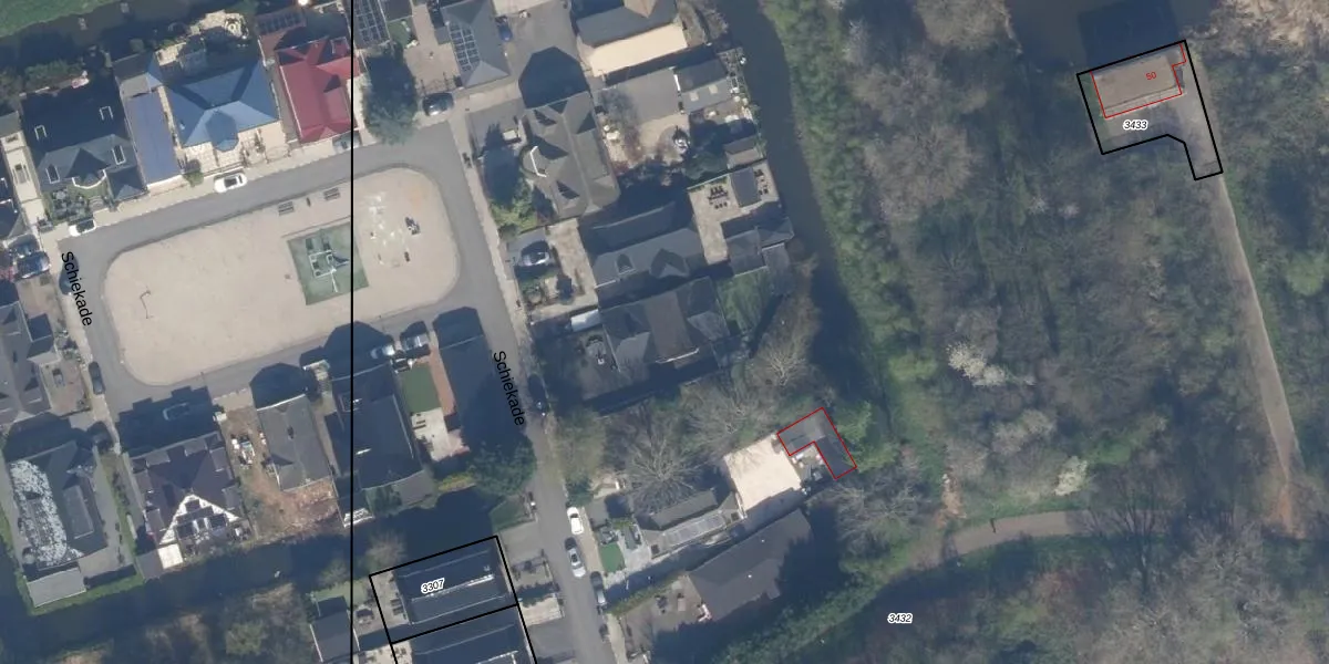 Het perceel waarop Schiekade 90 staat heeft een oppervlakte van 3,9 ha. Dit is een zeer groot perceel. De perceeloppervlakte wordt geregistreerd door het Kadaster. Gedetailleerde informatie over de maten van dit perceel kunt u vinden in het rapport Kadastrale kaart met maatvoering van Schiekade 90.