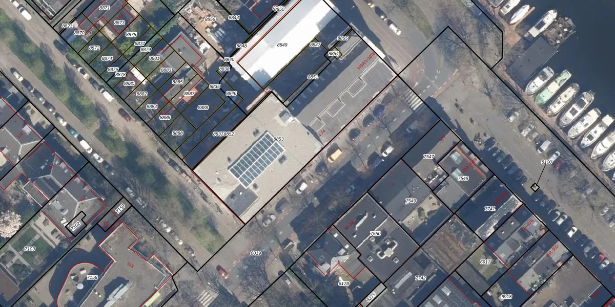 Het perceel waarop het adres ligt is SDM01-M-8853. De afkorting 'SDM01' staat voor kadastrale gemeente Schiedam. De gemiddelde perceeloppervlakte in de kadastrale gemeente Schiedam is 1011,07 m². Dit perceel is met zijn 1530 m² dus groter dan gemiddeld. Het grootste perceel in de kadastrale gemeente is 53,5 ha. Het kleinste perceel heeft een oppervlakte van 0 m². Op het perceel liggen in totaal 62 adressen. In de Basisregistratie Kadaster (BRK) werden de grenzen van het perceel geregistreerd op 03-07-2025.