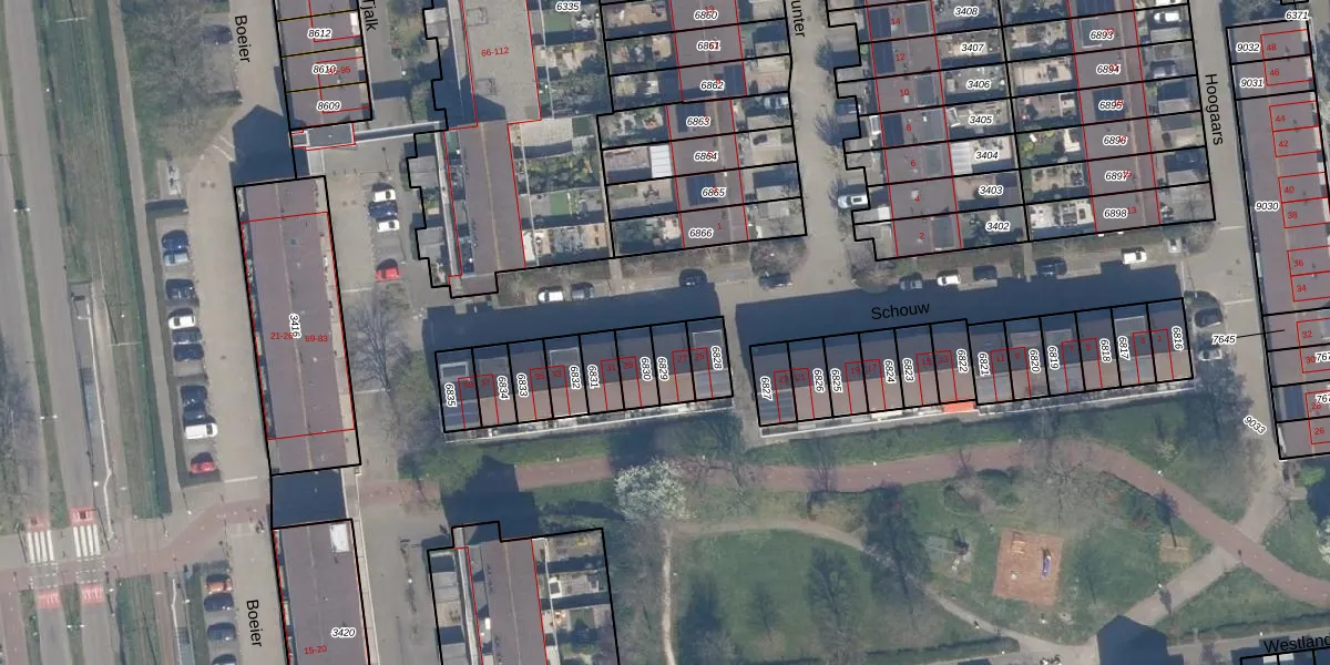 Het perceel waarop Schouw 27 staat heeft een oppervlakte van 65 m². Dit is een klein perceel. De perceeloppervlakte wordt geregistreerd door het Kadaster. Gedetailleerde informatie over de maten van dit perceel kunt u vinden in het rapport Kadastrale kaart met maatvoering van Schouw 27.