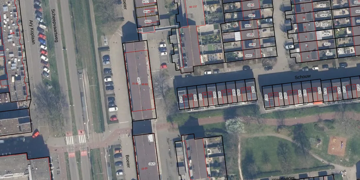Schouw 39 is gelegen op kadastraal perceel SDM01Q6835. Deze kadastrale aanduiding is uniek en wordt gebruikt door het Kadaster om eigendomsrechten en andere zakelijke rechten vast te leggen. Het perceel maakt onderdeel uit van de kadastrale gemeente Schiedam.