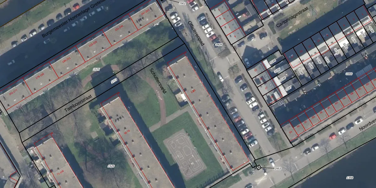 Het perceel waarop Schuttersveld 1 staat heeft een oppervlakte van 7234 m². Dit is een zeer groot perceel. De perceeloppervlakte wordt geregistreerd door het Kadaster. Gedetailleerde informatie over de maten van dit perceel kunt u vinden in het rapport Kadastrale kaart met maatvoering van Schuttersveld 1.