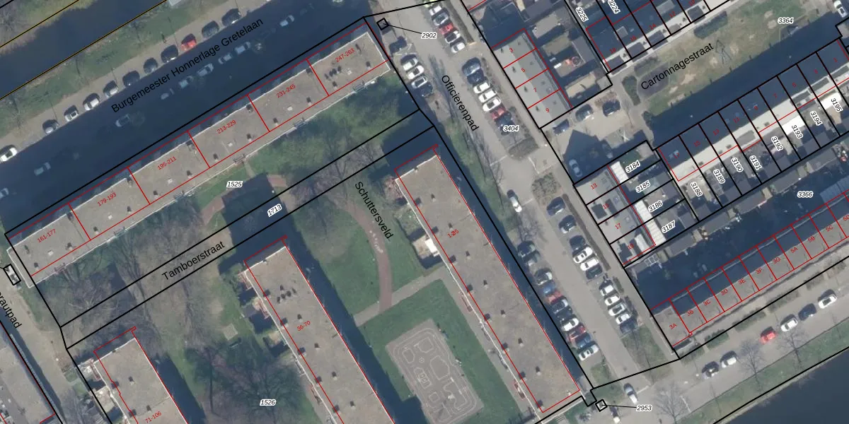 Het perceel waarop Schuttersveld 2 staat heeft een oppervlakte van 7234 m². Dit is een zeer groot perceel. De perceeloppervlakte wordt geregistreerd door het Kadaster. Gedetailleerde informatie over de maten van dit perceel kunt u vinden in het rapport Kadastrale kaart met maatvoering van Schuttersveld 2.