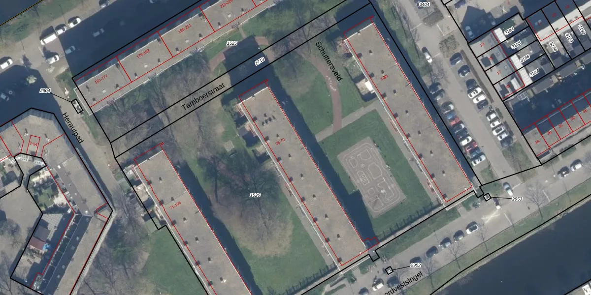 Het perceel waarop Schuttersveld 69 staat heeft een oppervlakte van 7234 m². Dit is een zeer groot perceel. De perceeloppervlakte wordt geregistreerd door het Kadaster. Gedetailleerde informatie over de maten van dit perceel kunt u vinden in het rapport Kadastrale kaart met maatvoering van Schuttersveld 69.