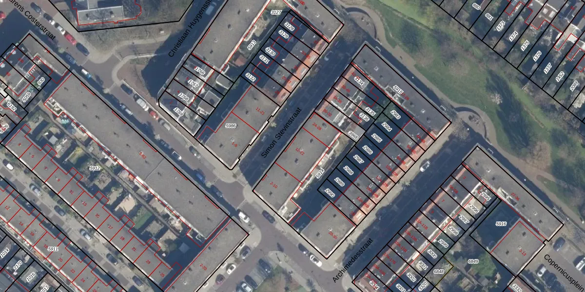 Simon Stevinstraat 20 is gelegen op kadastraal perceel SDM01I5914. Deze kadastrale aanduiding is uniek en wordt gebruikt door het Kadaster om eigendomsrechten en andere zakelijke rechten vast te leggen. Het perceel maakt onderdeel uit van de kadastrale gemeente Schiedam.