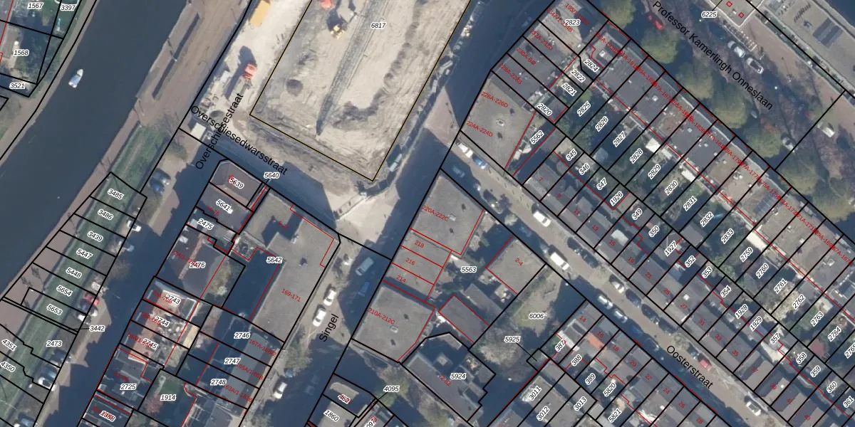 Het perceel waarop Singel 220-B staat heeft een oppervlakte van 1035 m². Dit is een zeer groot perceel. De perceeloppervlakte wordt geregistreerd door het Kadaster. Gedetailleerde informatie over de maten van dit perceel kunt u vinden in het rapport Kadastrale kaart met maatvoering van Singel 220-B.