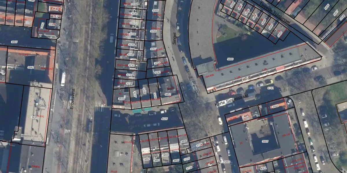 Het perceel waarop Singel 33 staat heeft een oppervlakte van 203 m². Dit is een middelgroot perceel. De perceeloppervlakte wordt geregistreerd door het Kadaster. Gedetailleerde informatie over de maten van dit perceel kunt u vinden in het rapport Kadastrale kaart met maatvoering van Singel 33.