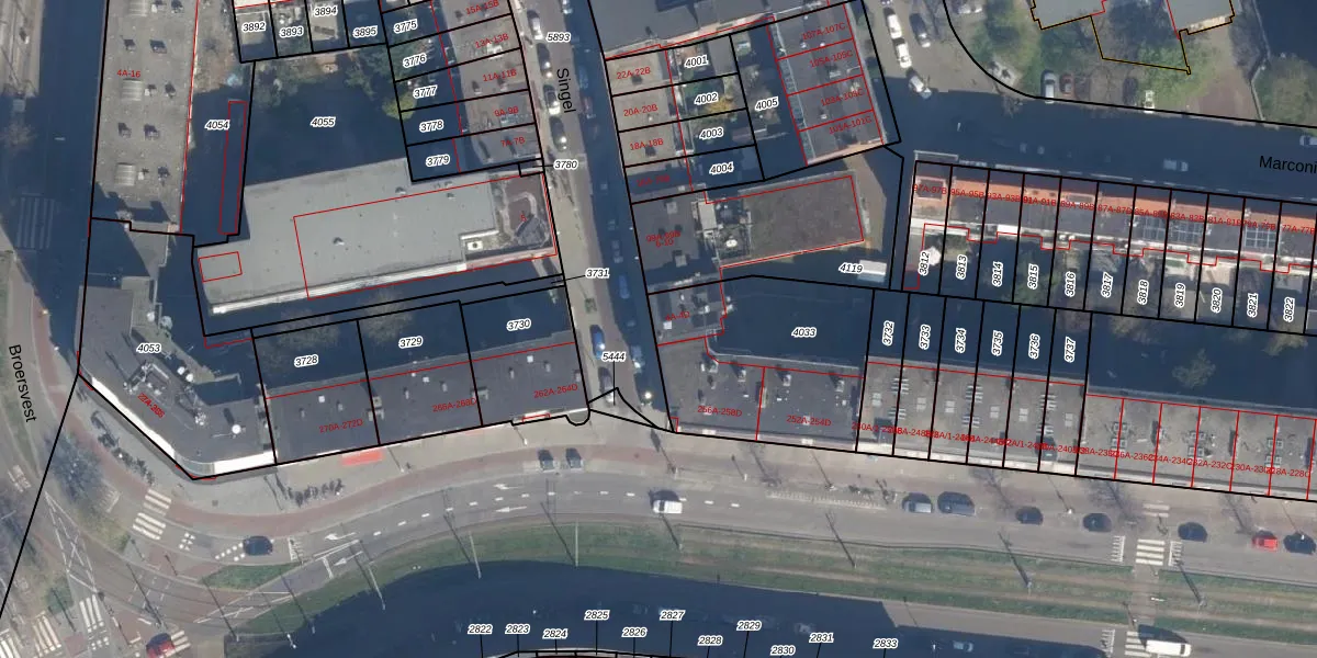 Het perceel waarop Singel 4-B staat heeft een oppervlakte van 753 m². Dit is een groot perceel. De perceeloppervlakte wordt geregistreerd door het Kadaster. Gedetailleerde informatie over de maten van dit perceel kunt u vinden in het rapport Kadastrale kaart met maatvoering van Singel 4-B.