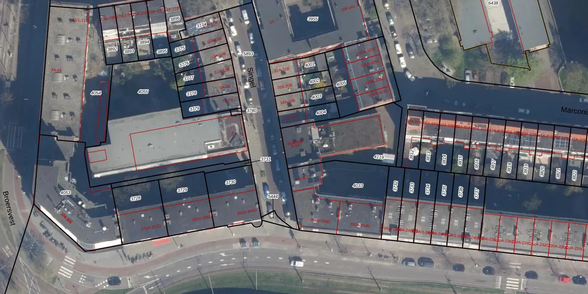 Het perceel waarop Singel 8 staat heeft een oppervlakte van 638 m². Dit is een groot perceel. De perceeloppervlakte wordt geregistreerd door het Kadaster. Gedetailleerde informatie over de maten van dit perceel kunt u vinden in het rapport Kadastrale kaart met maatvoering van Singel 8.