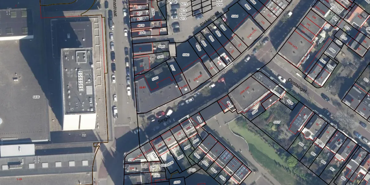 Het perceel waarop Singel 95-B staat heeft een oppervlakte van 108 m². Dit is een middelgroot perceel. De perceeloppervlakte wordt geregistreerd door het Kadaster. Gedetailleerde informatie over de maten van dit perceel kunt u vinden in het rapport Kadastrale kaart met maatvoering van Singel 95-B.