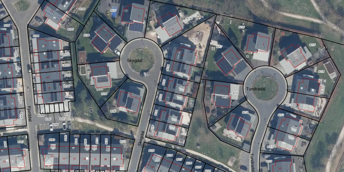 Het perceel waarop Skogdal 8 staat heeft een oppervlakte van 208 m². Dit is een middelgroot perceel. De perceeloppervlakte wordt geregistreerd door het Kadaster. Gedetailleerde informatie over de maten van dit perceel kunt u vinden in het rapport Kadastrale kaart met maatvoering van Skogdal 8.