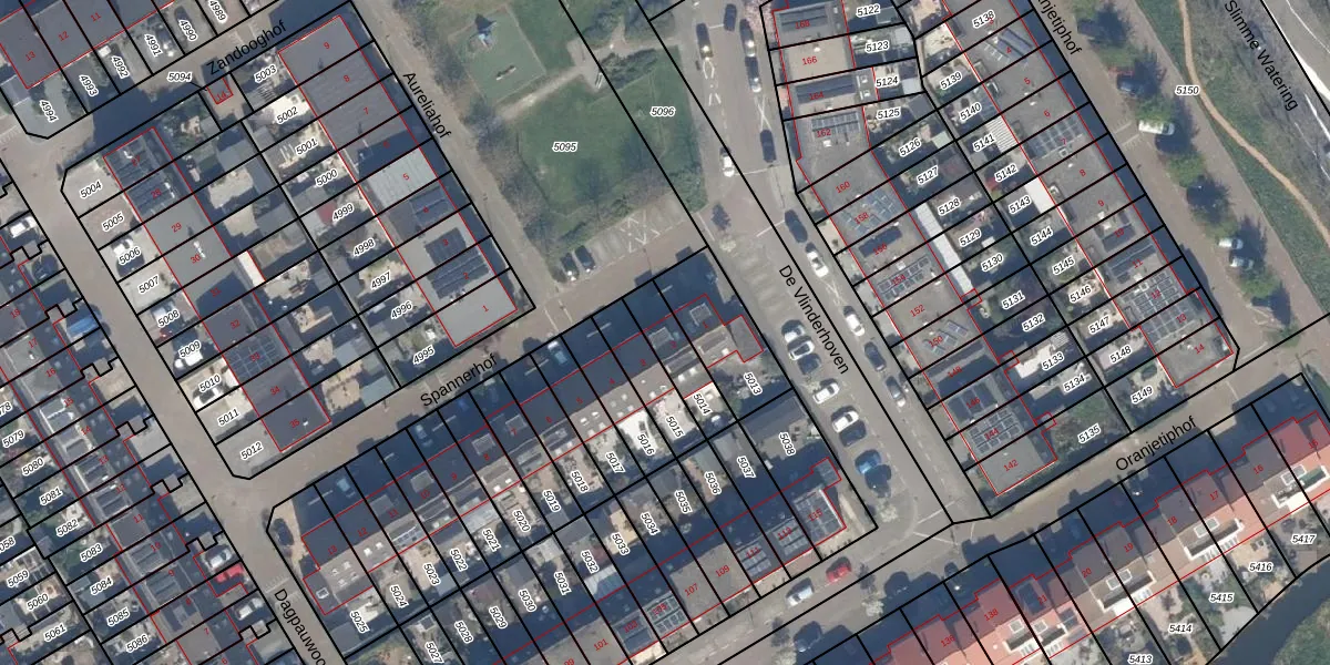 Gebruik de zoekbalk of klik op een perceel voor informatie over de adressen binnen dit perceel.