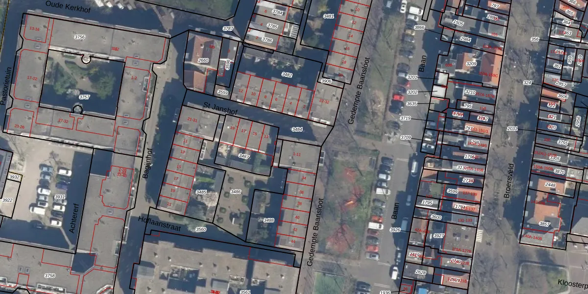 Het perceel waarop St Janshof 9 staat heeft een oppervlakte van 579 m². Dit is een groot perceel. De perceeloppervlakte wordt geregistreerd door het Kadaster. Gedetailleerde informatie over de maten van dit perceel kunt u vinden in het rapport Kadastrale kaart met maatvoering van St Janshof 9.