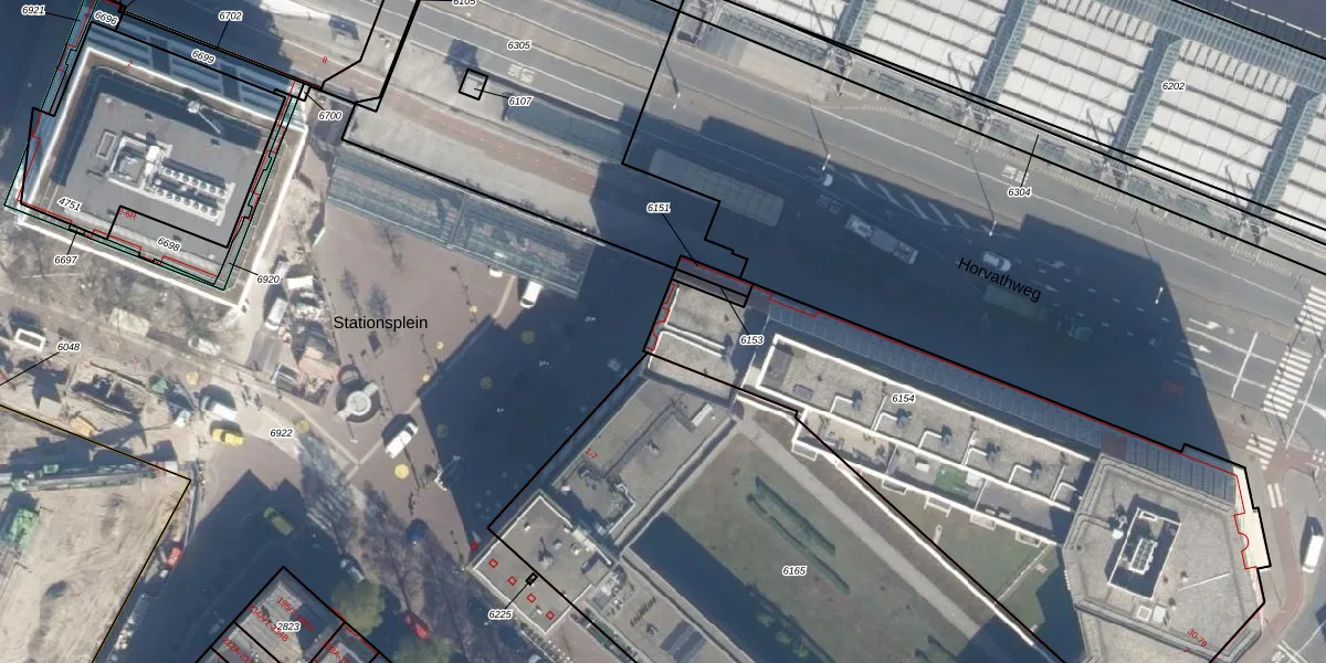 Het perceel waarop Stationsplein 34 staat heeft een oppervlakte van 2493 m². Dit is een zeer groot perceel. De perceeloppervlakte wordt geregistreerd door het Kadaster. Gedetailleerde informatie over de maten van dit perceel kunt u vinden in het rapport Kadastrale kaart met maatvoering van Stationsplein 34.