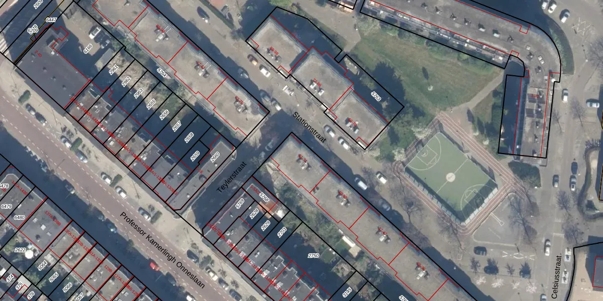 Het perceel waarop Stationstraat 63 staat heeft een oppervlakte van 2130 m². Dit is een zeer groot perceel. De perceeloppervlakte wordt geregistreerd door het Kadaster. Gedetailleerde informatie over de maten van dit perceel kunt u vinden in het rapport Kadastrale kaart met maatvoering van Stationstraat 63.