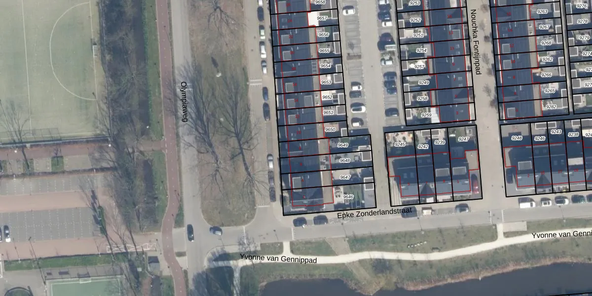 Het perceel waarop het adres ligt is SDM01-Q-9649. De afkorting 'SDM01' staat voor kadastrale gemeente Schiedam. Het perceel is kleiner dan gemiddeld in Schiedam. Het perceel is 168 m² groot, terwijl het gemiddelde ligt op 1011,07 m². Het grootste perceel in de kadastrale gemeente is 53,5 ha. Het kleinste perceel heeft een oppervlakte van 0 m². Op het perceel bevinden zich geen andere adressen. In de Basisregistratie Kadaster (BRK) werden de grenzen van het perceel geregistreerd op 08-06-2021.