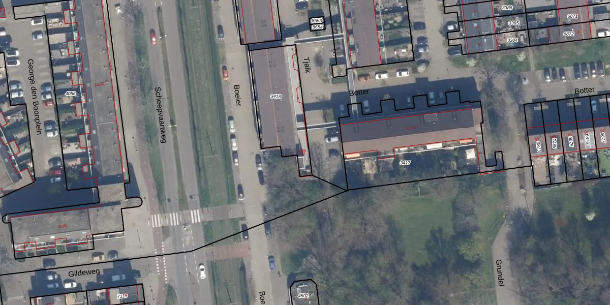 Het perceel waarop Tjalk 33 staat heeft een oppervlakte van 570 m². Dit is een groot perceel. De perceeloppervlakte wordt geregistreerd door het Kadaster. Gedetailleerde informatie over de maten van dit perceel kunt u vinden in het rapport Kadastrale kaart met maatvoering van Tjalk 33.
