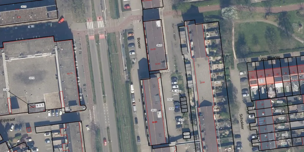 Het adres ligt op het perceel SDM01-Q-3419, dat zich in de kadastrale gemeente Schiedam bevindt. De gemiddelde perceelgrootte in Schiedam is 1011,07 m². Dit perceel is kleiner: de perceeloppervlakte bedraagt 615 m². De grootste perceeloppervlakte in de kadastrale gemeente is 53,5 ha. De kleinste oppervlakte bedraagt 0 m². Op het perceel zijn 15 adressen aanwezig. De huidige grenzen van het perceel zijn digitaal in de Basisregistratie Kadaster (BRK) geregistreerd op 08-11-2005.