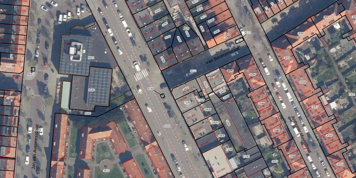 Het perceel waarop Van Beverenstraat 49 staat heeft een oppervlakte van 94 m². Dit is een klein perceel. De perceeloppervlakte wordt geregistreerd door het Kadaster. Gedetailleerde informatie over de maten van dit perceel kunt u vinden in het rapport Kadastrale kaart met maatvoering van Van Beverenstraat 49.