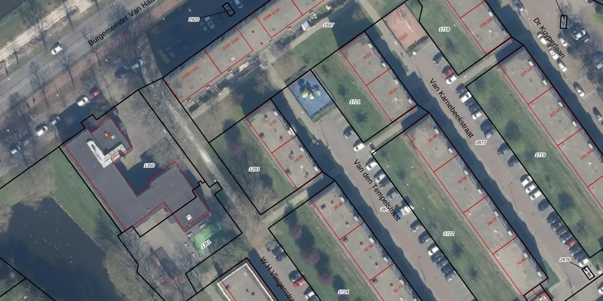 Het perceel waarop Van den Tempelstraat 24 staat heeft een oppervlakte van 755 m². Dit is een groot perceel. De perceeloppervlakte wordt geregistreerd door het Kadaster. Gedetailleerde informatie over de maten van dit perceel kunt u vinden in het rapport Kadastrale kaart met maatvoering van Van den Tempelstraat 24.