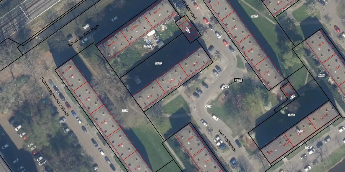 Van Hallstraat 38 is gelegen op kadastraal perceel SDM01P2630. Deze kadastrale aanduiding is uniek en wordt gebruikt door het Kadaster om eigendomsrechten en andere zakelijke rechten vast te leggen. Het perceel maakt onderdeel uit van de kadastrale gemeente Schiedam.