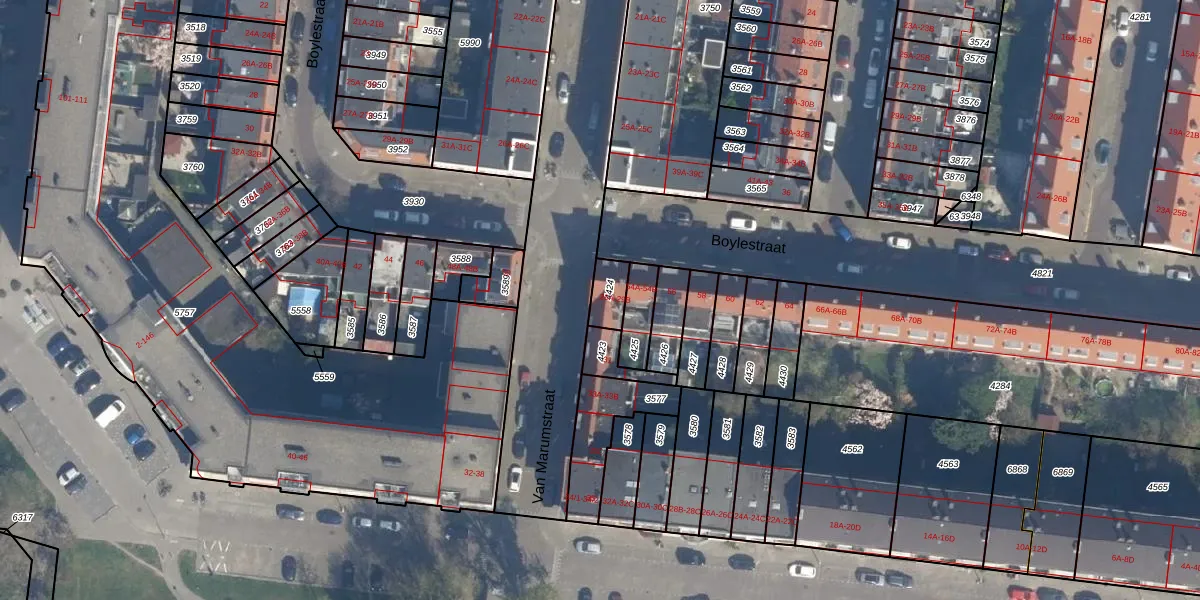 Het perceel waarop Van Marumstraat 29-B staat heeft een oppervlakte van 59 m². Dit is een klein perceel. De perceeloppervlakte wordt geregistreerd door het Kadaster. Gedetailleerde informatie over de maten van dit perceel kunt u vinden in het rapport Kadastrale kaart met maatvoering van Van Marumstraat 29-B.
