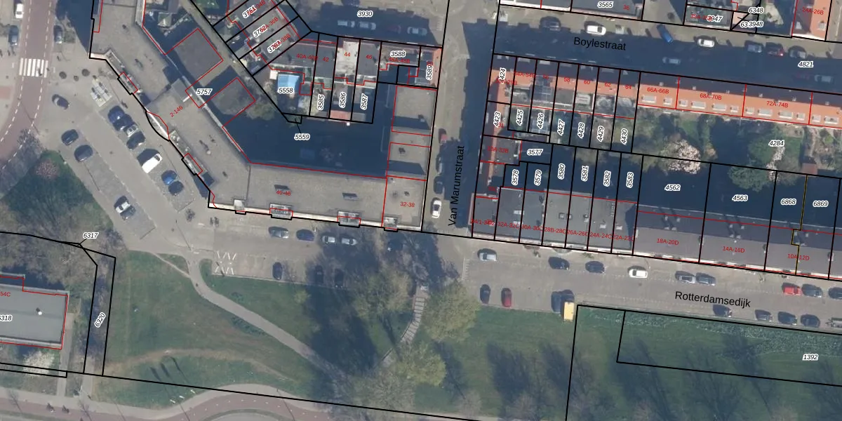 Het adres ligt op het perceel SDM01-I-5757, dat zich in de kadastrale gemeente Schiedam bevindt. De oppervlakte van het perceel is 3160 m². Dat is groter dan gemiddeld in Schiedam, waar de gemiddelde perceeloppervlakte op 1011,07 m² ligt. Het grootste perceel in de kadastrale gemeente is 53,5 ha. Het kleinste perceel heeft een oppervlakte van 0 m². Er zijn 87 adressen aanwezig op het perceel. De laatste wijziging in het de Basisregistratie Kadaster (BRK) was op 11-02-2003.