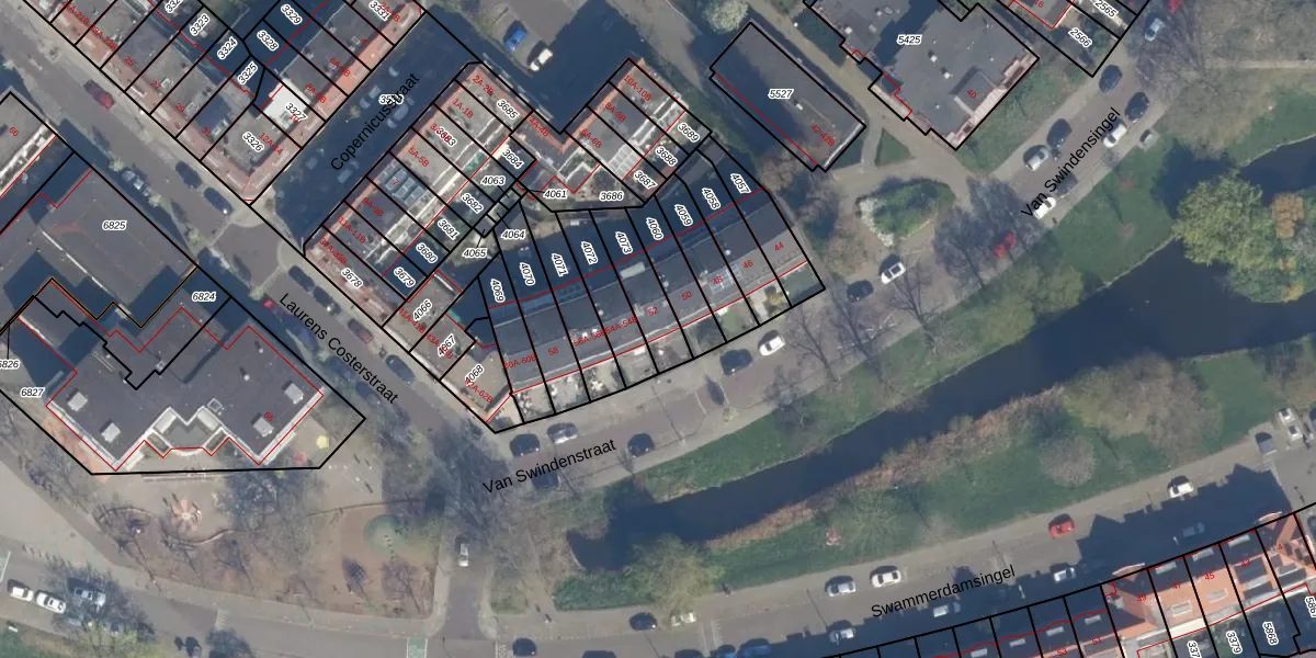 Gebruik de zoekbalk of klik op een perceel voor informatie over de adressen binnen dit perceel.