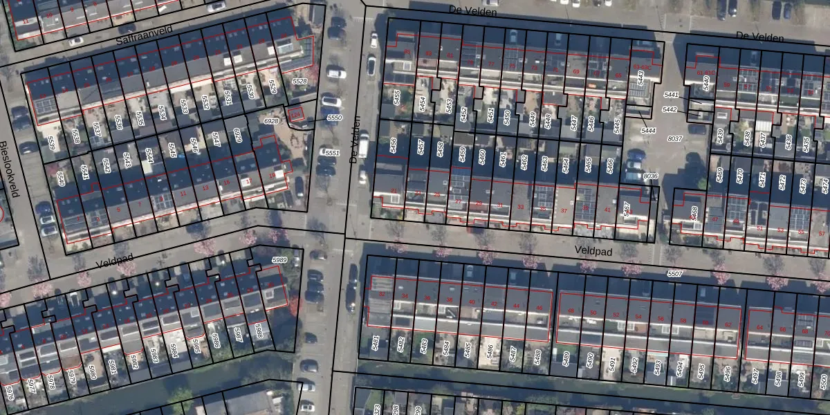 Het perceel waarop Veldpad 23 staat heeft een oppervlakte van 122 m². Dit is een middelgroot perceel. De perceeloppervlakte wordt geregistreerd door het Kadaster. Gedetailleerde informatie over de maten van dit perceel kunt u vinden in het rapport Kadastrale kaart met maatvoering van Veldpad 23.